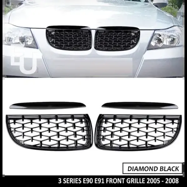Compatible With Bmw 3 Series E90 2005-2007 Pre Lci Front Bumper Show M3 Sports Grill Diamond Black