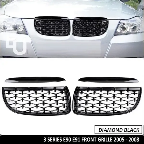 Compatible With Bmw 3 Series E90 2005-2007 Pre Lci Front Bumper Show M3 Sports Grill Diamond Chrome