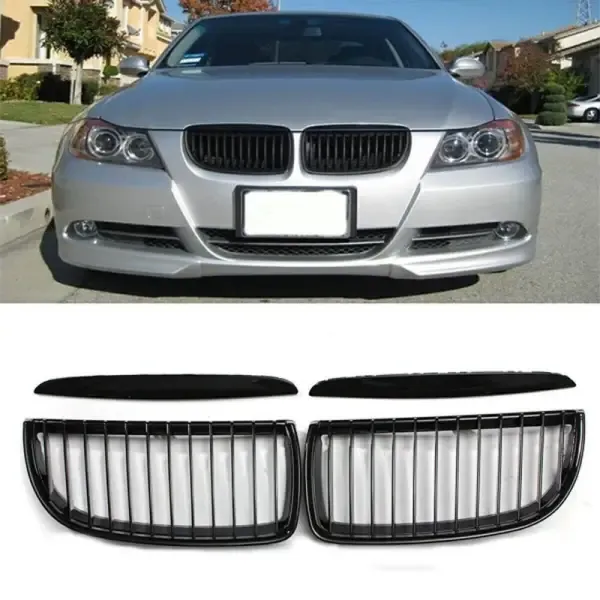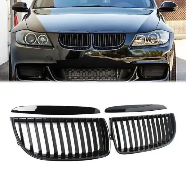 Compatible With Bmw 3 Series E90 2005-2007 Pre Lci Front Bumper Show M3 Sports Grill Glossy Black Single Bar