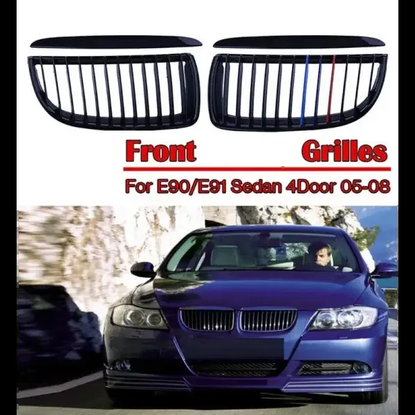 Compatible With Bmw 3 Series E90 2005-2007 Pre Lci Front Bumper Show M3 Sports Grill tri Colour Single Bar