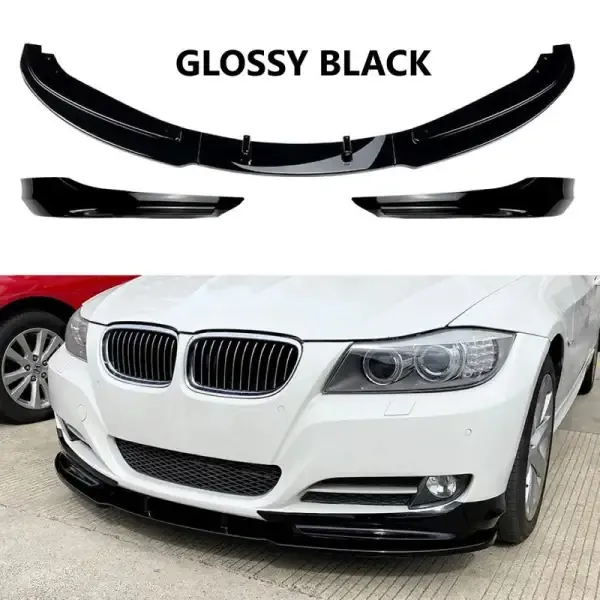 Compatible With Bmw 3 Series E90 Lci 2008-2012 Front Bumper Side Lip Spoiler Skirst Splitter Zst-407 Gb Glossy Black Zst-402+zst-407 Gb Glossy Black/
