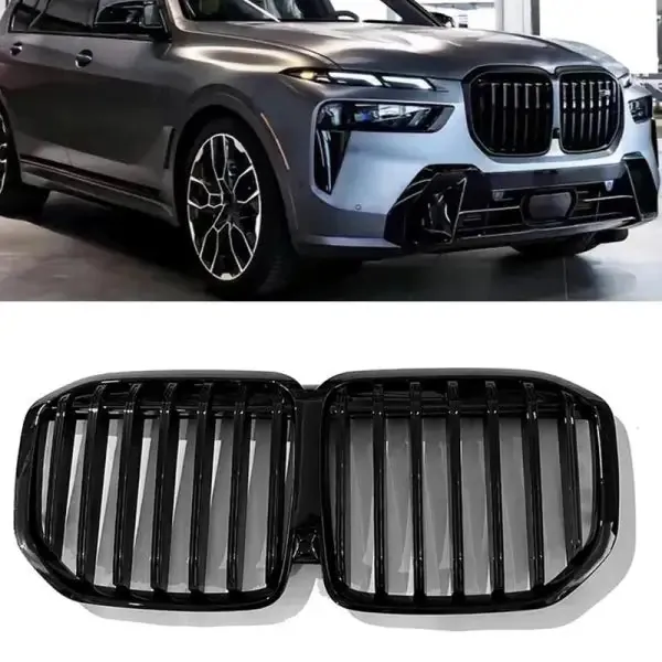 Compatible With Bmw X7 G07 Lci 2023+ Front Bumper Single Line Show Grill Glossy Black