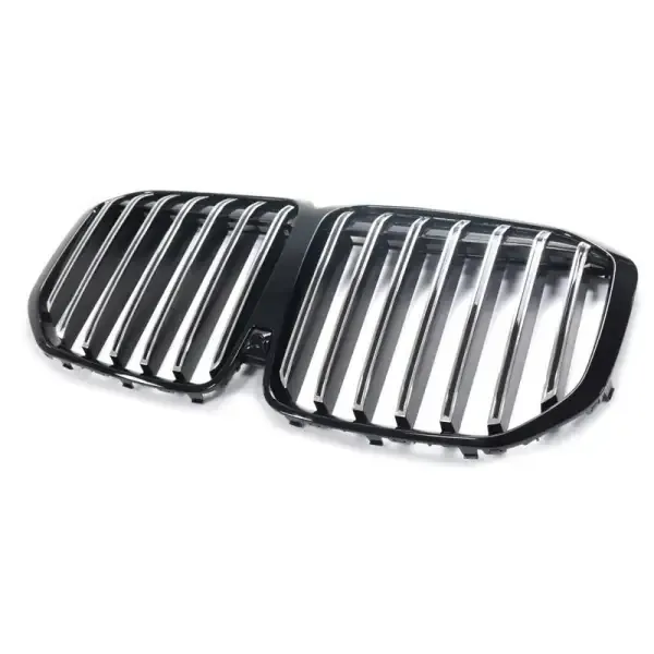 Compatible With Bmw X7 G07 Lci 2023+ Front Bumper Single Line Show Grill Glossy Black Silver