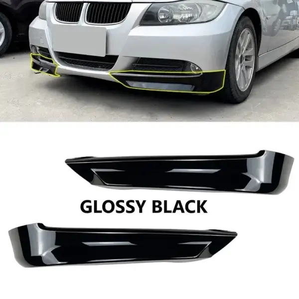 Front Bumper Spoiler Skirts Lip Splitter Flag Zst-406 Gb Glossy Black CC-3962 Compatible With BMW 3 Series E90 2004-2008
