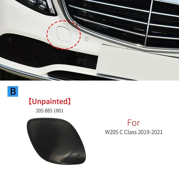 Front Bumper Tow Hook Towing Tochan Trailer Cover 2058851801 Unpainted CC-6796 Compatible With Mercedes Benz C Class W205 Lci 2019-2023