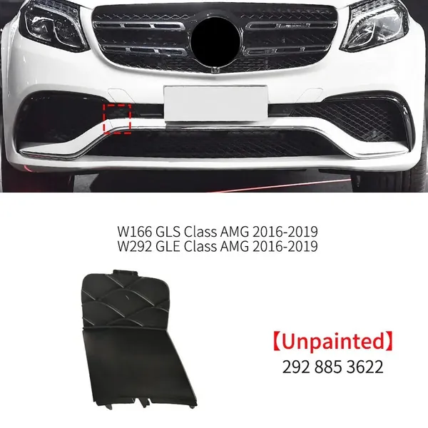 COMPATIBLE WITH MERCEDES BENZ GLE GLS W166 W292 2016-2019 AMG FRONT BUMPER TOW HOOK TOWING TOCHAN TRAILER COVER 2928853622 UNPAINTED