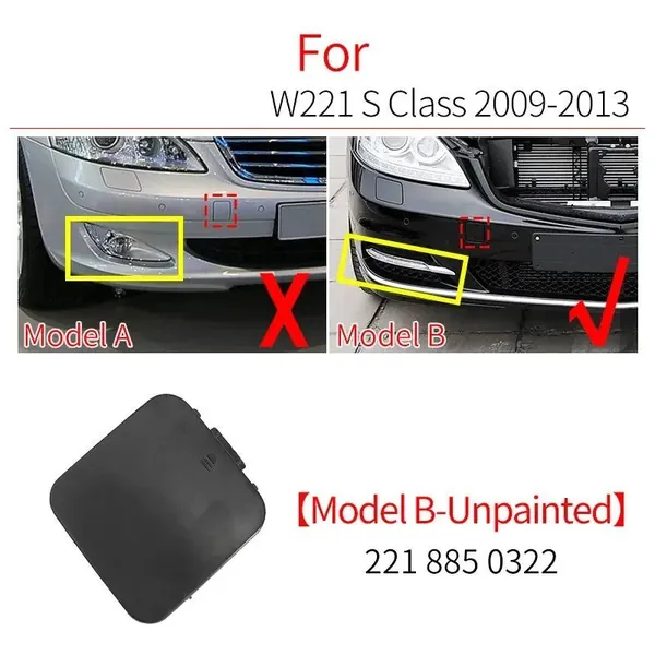 Compatible With Mercedes S Class W221 2005-2014 Front Bumper Trailer Tow Towing Hook Hole Cover 2218850322 Unpainted Model B