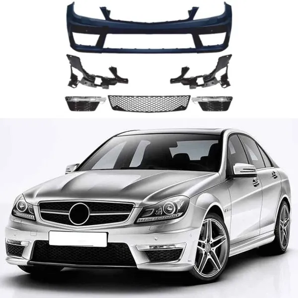 COMPATIBLE WITH MERCEDES BENZ C CLASS W204 2011-2014 FRONT BUMPER UPGRADE CONVERT TO AMG C63 AMG BUMPER BODYKIT GC W204-005