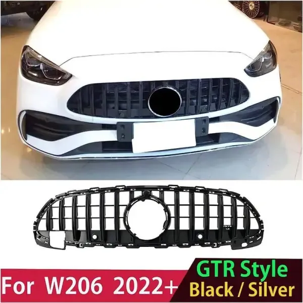 Front Bumper Upgrade Show Grill Gtr With Camera Hole Sports Amg Line Black GC W206-001 CC-1726 Compatible With Mercedes Benz C Class W206 2022+