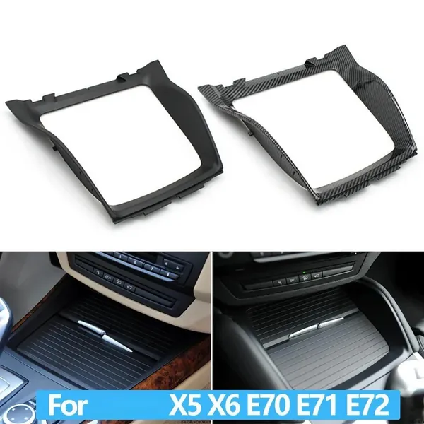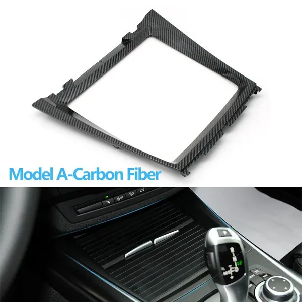 Compatible With Bmw X5 E70 2008-2013 X6 E71 E72 2008-2014 Front Center Console Water Cup Drink Holder Decorative Cover Panel Bezel 51166956756-3 Carbon Fiber Look