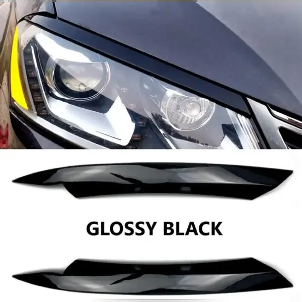 Compatible With Volkswagen Passat B7 2011-2014 Front Headlight Eyebrow Lip Splitter Skirts Flag Zst-141 Gb Glossy Black