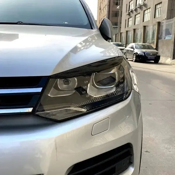 Compatible With Volkswagen Touareg 2010-2018 Front Headlight Eyebrow Lip Splitter Skirts Flag Zst-246 Cf Carbon Fiber Look