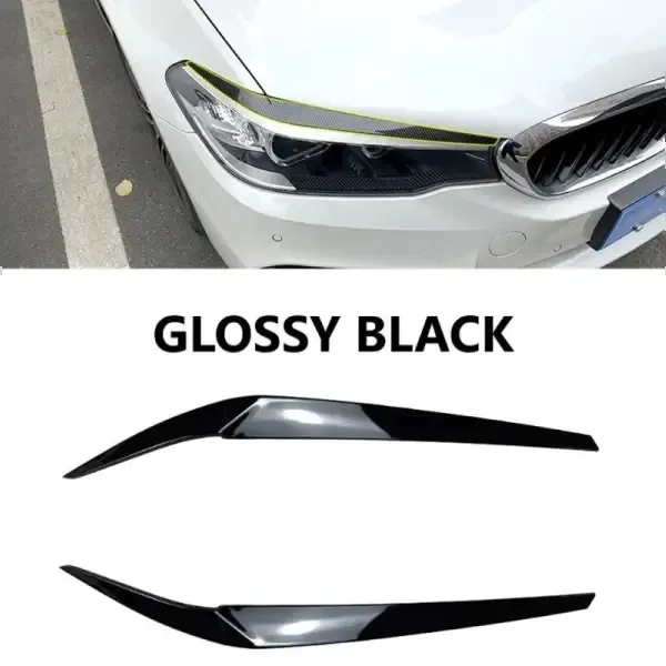 Front Headlight Eyebrow Lip Splitter Skirts Flag Zst-312 Gb Glossy Black CC-4015 Compatible With Bmw 5 Series G30 2017-2021
