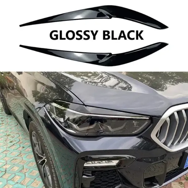 Front Headlight Eyebrow Lip Splitter Skirts Flag Zst-357 Gb Glossy Black CC-4080 Compatible With BMW X5 X6 G05 G06 2018-2022