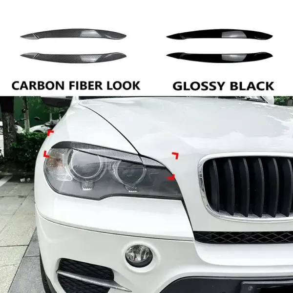 Compatible With Bmw X5 E70 2007-2014 Front Headlight Eyebrow Lip Splitter Skirts Flag Zst-510 Cf Carbon Fiber Look