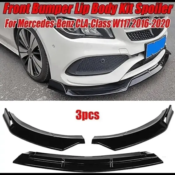 Front Lip Bumper Lip 3 Parts Glossy Black AR-Benz-003 CC-2455 Compatible With Mercedes Cla W117 2013-2019