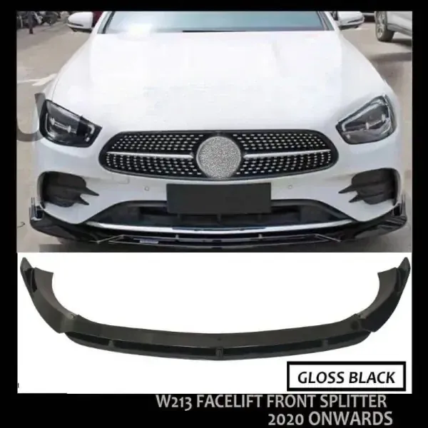 Compatible with Mercedes E Class W213 2020+ Front Lip Bumper Lip Spoiler Brabus Style Ar-benz-013 Glossy Black CC-248
