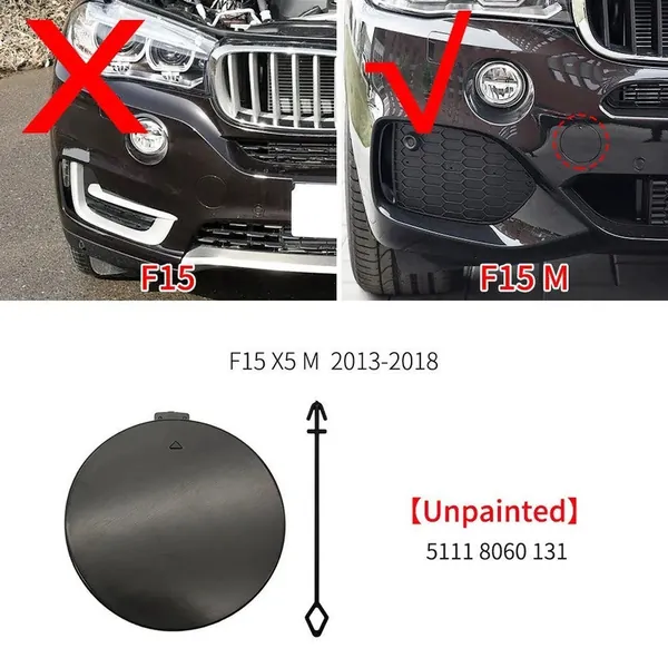 Front M Sport X5m Bumper Tow Hook Towing Tochan Trailer Cover 51118060131 Unpainted CC-6992 Compatible With BMW X5 F15 2014-2018