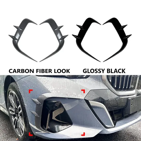COMPATIBLE WITH BMW 5 SERIES G60 2024+ FRONT M SPORTS BUMPER FOG LAMP LIGHT AIR INTAKE WIND KNIFE TRIM SKIRTS CANARD SPLITTERS CARBON FIBER LOOK ZST-754 CF