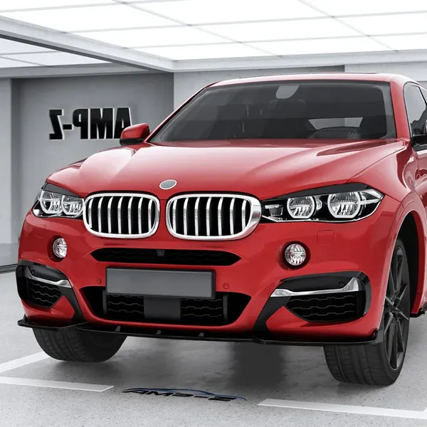 Front M Sports Bumper Lip Splitter Skirts Glossy Black Zst-714 Gb CC-6017 Compatible With Bmw X6 F16 2014-2019