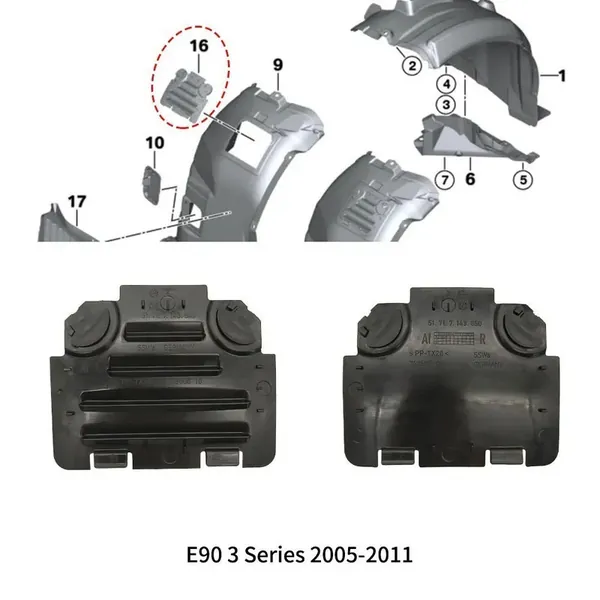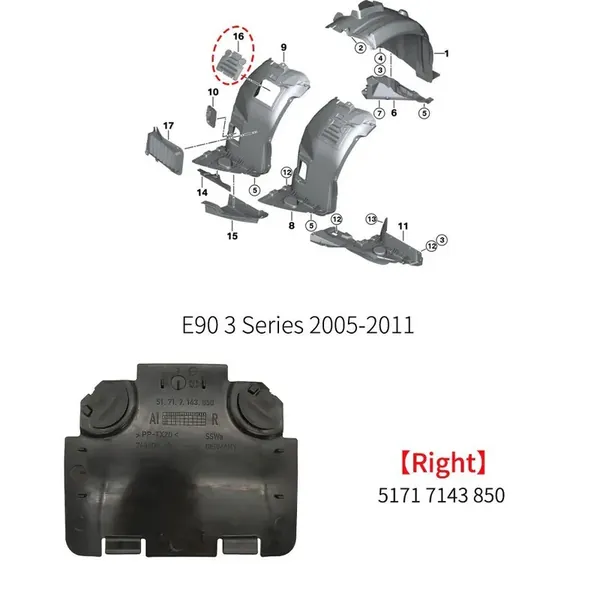 COMPATIBLE WITH BMW 3 SERIES E90 2005-2012 CAR FRONT MUDGUARD WHEEL ARCH FENDER LINER VENT ACCESS PANEL LID COVER RIGHT 51717143850