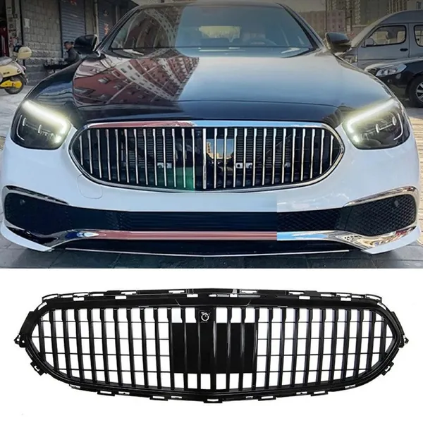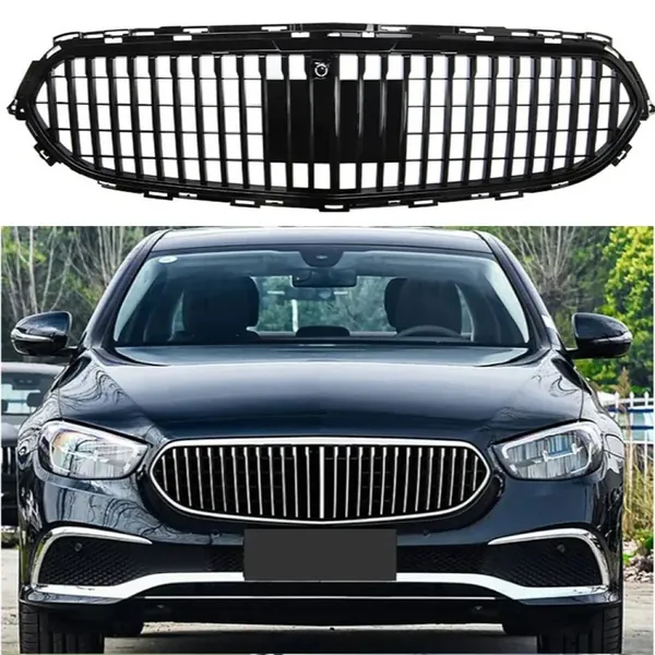 COMPATIBLE WITH MERCEDES BENZ E CLASS W213 LCI 2020-2024 CAR FRONT RACING BUMPER SHOW GRILLE MAYBACH STYLE BLACK WITH RADAR SENSOR