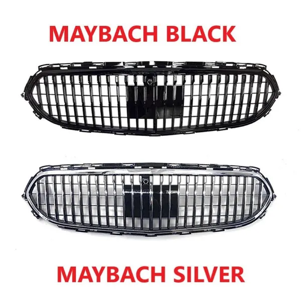 COMPATIBLE WITH MERCEDES BENZ E CLASS W213 LCI 2020-2024 CAR FRONT RACING BUMPER SHOW GRILLE MAYBACH STYLE SILVER WITH RADAR SENSOR