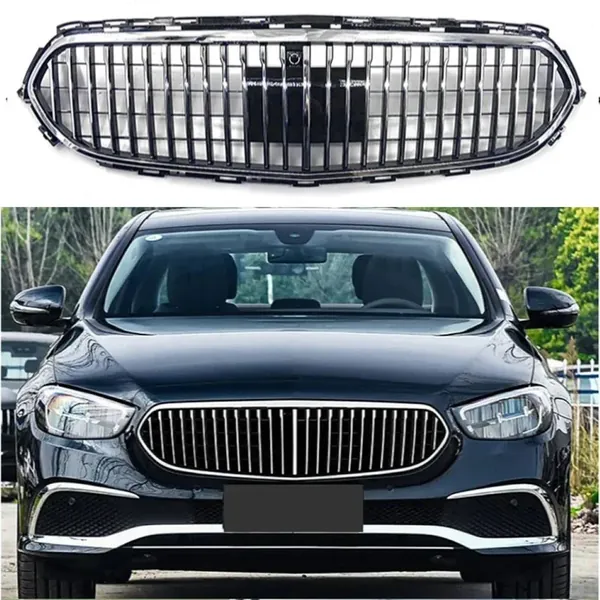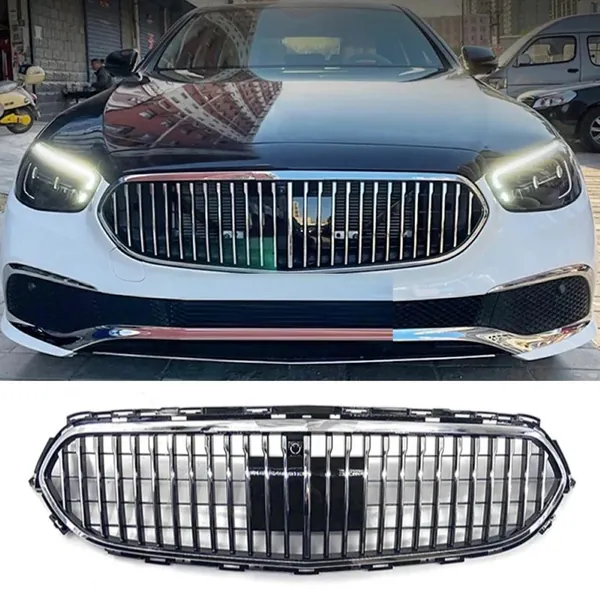 Front Racing Bumper Show Grille Maybach Style Silver With Radar Sensor CC-8602 Compatible With Mercedes Benz E Class W213 Lci 2020-2024
