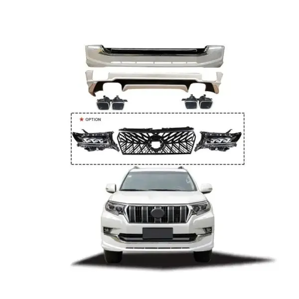 COMPATIBLE WITH TOYOTA LAND CRUISER PRADO FJ150 2018 FRONT REAR BUMPER LIP SPLITTER DIFFUSER EXHAUST TIPS BODYKIT
