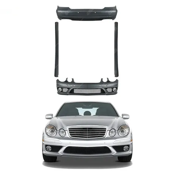 COMPATIBLE WITH MERCEDES BENZ E CLASS W211 2007-2009 FRONT REAR BUMPER UPGRADE CONVERT TO AMG C63 BUMPER BODYKIT SIDE SKIRTS WITH FOG LAMP