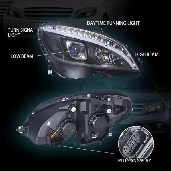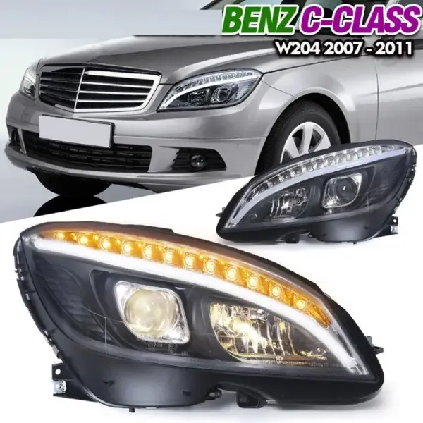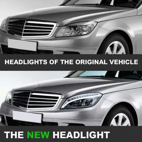 COMPATIBLE WITH MERCEDES BENZ C CLASS W204 2007-2011 CAR FRONT UPGRADED HEAD LIGHT LAMP XENON HEADLIGHT RETROFIT UPGRADE MODIFIED LED DRL HID C CLASS STYLE