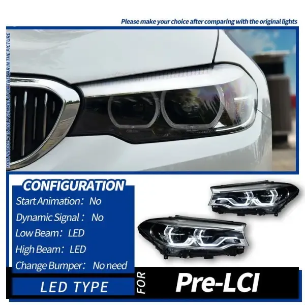 COMPATIBLE WITH BMW 5 SERIES G30 G38 2017-2021 CAR FRONT UPGRADED HEAD LIGHT LAMP XENON HEADLIGHT RETROFIT UPGRADE MODIFIED LED DRL HID