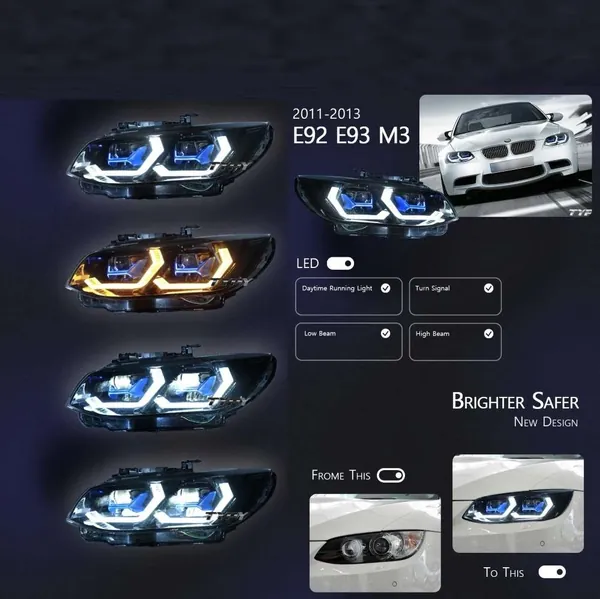 COMPATIBLE WITH BMW 3 SERIES M3 E92 E93 LCI 2010-2012 CAR FRONT UPGRADED HEAD LIGHT LAMP XENON HEADLIGHT RETROFIT UPGRADE MODIFIED LED DRL HID FOR HELOGEN CAR