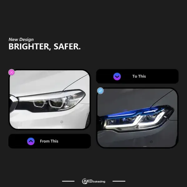 Front Upgraded Head Light Lamp Xenon Headlight Retrofit Upgrade Modified Led Drl Hid Laser Style Blue CC-5768 Compatible With Bmw 5 Series G30 G38 2017-2021