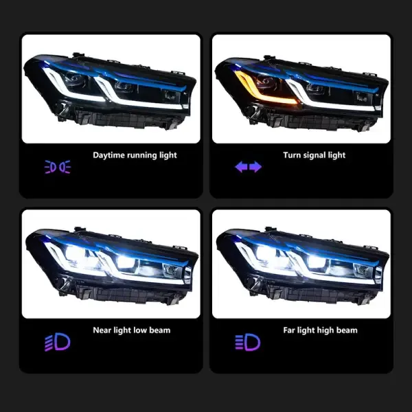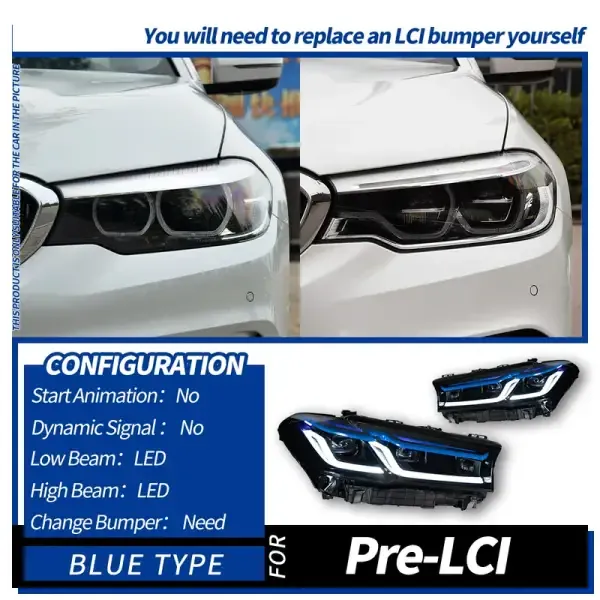COMPATIBLE WITH BMW 5 SERIES G30 G38 2017-2021 CAR FRONT UPGRADED HEAD LIGHT LAMP XENON HEADLIGHT RETROFIT UPGRADE MODIFIED LED DRL HID LASER STYLE BLUE
