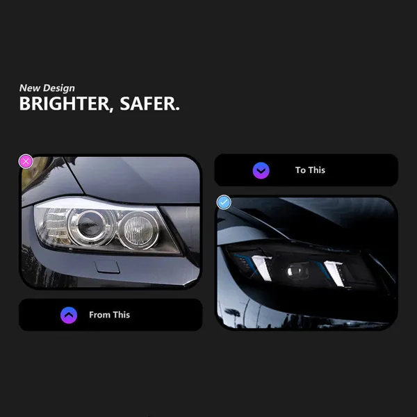 COMPATIBLE WITH BMW 3 SERIES E90 2008-2012 CAR FRONT UPGRADED HEAD LIGHT LAMP XENON HEADLIGHT RETROFIT UPGRADE MODIFIED LED DRL HID LASER STYLE FOR XENON CAR
