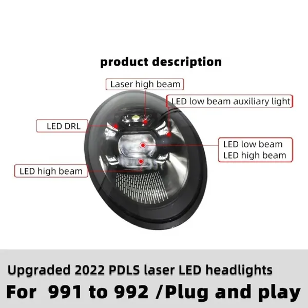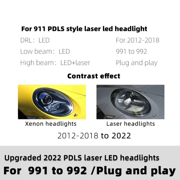 COMPATIBLE WITH PORSCHE 991 2012-2018 CAR FRONT UPGRADED TO 992 2023 HEAD LIGHT LAMP XENON HEADLIGHT RETROFIT UPGRADE MODIFIED LED DRL HID