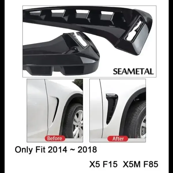 Front Wing Side Fender Vent Leaf Trims With Bagde Glossy Black CC-1640 Compatible With BMW X5 F15 X5m F85 2014-2018
