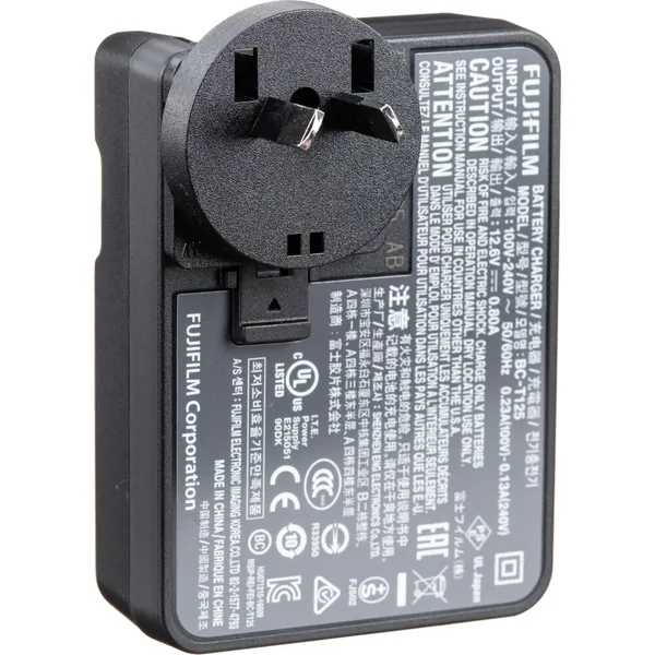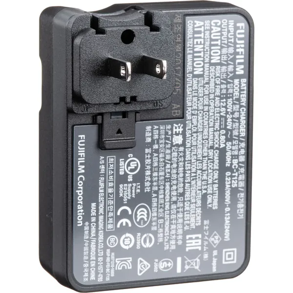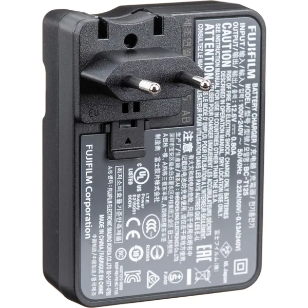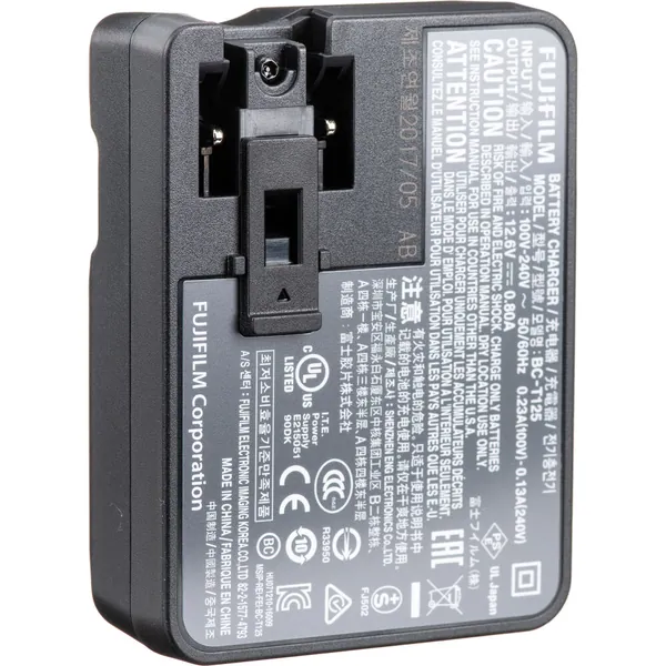 This BC-T125 Battery Charger from FUJIFILM is designed to charge NP-T125 lithium-ion battery for the GFX 50S camera. The LED indicator illuminates during the charging cycle and turns off when charge is complete.