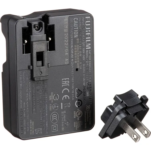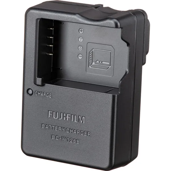 This BC-W126S Battery Charger from FUJIFILM is designed to charge NP-W126S lithium-ion batteries. The LED indicator illuminates during the charging cycle and turns off when charge is complete.