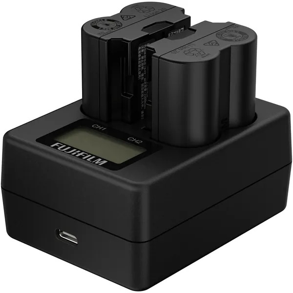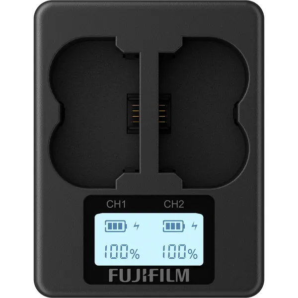 Up your charging efficiency with this FUJIFILM BC-W235 Dual Battery Charger, which is capable of charging two NP-W235 batteries at once. An integrated backlit screen also displays the charging status for both batteries.