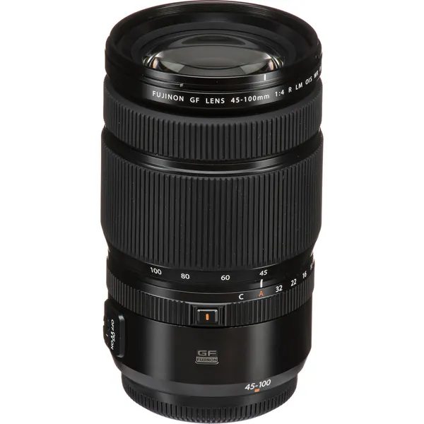 Prized for its versatility, the FUJIFILM GF 45-100mm f/4 R LM OIS WR is a standard zoom covering a useful wide-angle to portrait-length range to suit working in a variety of situations. Complementing this flexible range is a high-performance optical design that includes a Super ED element, an ED element, and three aspherical elements, which all contribute to reducing a variety of aberrations in order to achieve greater sharpness and clarity. Balancing the optics, this lens is also distinguished by its five stop-effective image stabilization system that minimizes the appearance of camera shake for sharper handheld imagery. A linear autofocus motor is also used to deliver fast, near-silent focusing performance to benefit both photos and videos. Additionally, the lens also features a dust-, freeze-, and weather-resistant construction to suit working in trying environmental conditions.