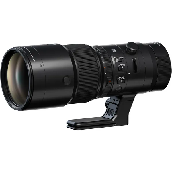 Expand your reach with the fast and accurate GF 500mm f/5.6 R LM OIS WR Lens from FUJIFILM. Ideal for sports and wildlife photography, this powerful super-telephoto lens is designed for GFX System users and provides a 396mm full-frame equivalent focal length. The optical construction incorporates five ED and two Super ED elements for reducing aberrations and creating detail-rich imagery. Six stops of image stabilization allow for shooting handheld with considerably less camera shake. Helping users stay locked onto their subjects is the lens's near-silent and high-performing linear autofocus motor. Additionally, this lens is reliable in slightly harsh weather conditions due to its weather-resistant design, helping to prevent dust and water from degrading it.