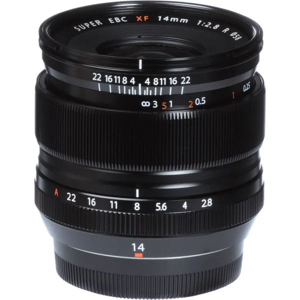 A bright wide-angle prime, the XF 14mm f/2.8 R from FUJIFILM is a 21mm-equivalent lens featuring a broad angle of view well-suited for landscape, interior, and astrophotography applications. Its optical design incorporates a pair of aspherical elements to control distortion and spherical aberrations, and three extra-low dispersion elements are also featured, which help to reduce color fringing for improved clarity. A Super EBC coating is used, too, to reduce flare and ghosting for improved color accuracy and contrast when working in bright and backlit situations.