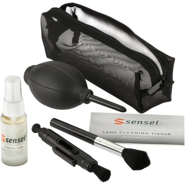 Keep your optical surfaces clean with the Sensei OC-CK Optics Care and Cleaning Kit. This kit contains a pack of lens tissues, a lens cleaning pen, bulb air blower, paint brush, lipstick brush, lens cleaning fluid, microfiber cleaning cloth, and see-through mesh travel case to put everything in. This kit can be used to clean a variety of different optics and glass. You can use the air bulb blower and any of the three supplied brushes to initially remove dust from the surface. Sensei recommends applying a small amount of the alcohol- and ammonia-free cleaning fluid directly to the lens tissue. Then, gently rub in small circular motions to remove stubborn smudges or fingerprints from the glass. For those more stubborn blemishes or smudges, the lens pen is very effective.