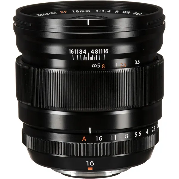 Fast and wide, the XF 16mm f/1.4 R WR is a 24mm-equivalent wide-angle lens designed specifically for FUJIFILM X-mount mirrorless cameras. Two aspherical and two extra-low dispersion elements are featured in the optical design, and help to reduce spherical and chromatic aberrations for improved sharpness, clarity, and color accuracy. Both a Nano-GI coating and HT-EBC coating are also used to control ghosting and flare for enhanced contrast and color fidelity when working in strong lighting conditions. Complementing the optics is a floating focus system that benefits autofocus speed and also maintains consistent performance throughout the focusing range. Additionally, the lens body is also weather-sealed to support working in trying environmental conditions.