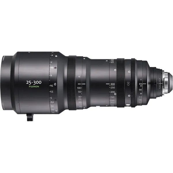 Spanning the Film and ENG worlds, and supporting 4K production, the Fujinon ZK25-300mm T3.5 to T3.85 Cabrio Lens is a 12x zoom for Super35 single-sensor cameras, and it features a PL mount. The long zoom range allows you to shoot medium-wide to long shots without changing lenses, and it holds its maximum T3.5 aperture from 25 to 273mm, almost the entire length of the zoom, losing less than half a stop as it reaches 300mm. This minimized iris ramping makes it easier to use a continuous zoom along the entire zoom range of the lens.