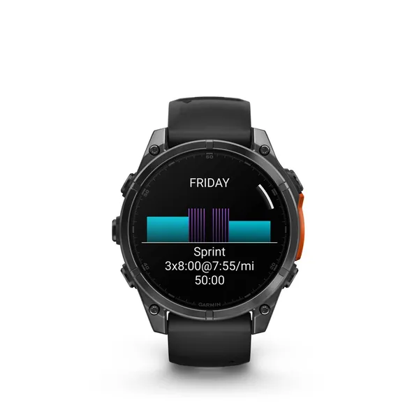 Be limitless. The fenix 8 series multisport GPS smartwatches are built for serious athletes and outdoor adventurers who want to push beyond their limits. The fenix 8 Series nowcomes with either a bright AMOLED display or an always-on, solar-charged display for added battery life. With leakproof buttons and an added sensor guard fenix is water-rated to 100 metres and dive capable up to 40 metres, this is the toughest fenix we ever built. Both versions are available with a scratch-resistant sapphire lensand durable titanium bezel. Experience advanced strength training plans and targeted workouts for many activity types to boost your body's stamina and performance.Pair with your smartphone for on-wrist calling with the built-in speaker and mic. Plus, there's a powerful built-in LED flashlight with variablelightintensities, including aredsafetylightthat gives you greaterawarenesswhenyoutraininthedarkandcanprovideconvenientilluminationwhenyouneedit.Enjoy extended off-grid adventures with enhanced battery life for both fenix 8 AMOLED and fenix 8 Solar versions. Additional features include music storage, Garmin Paycontactless payments1, smart notifications2, and more.