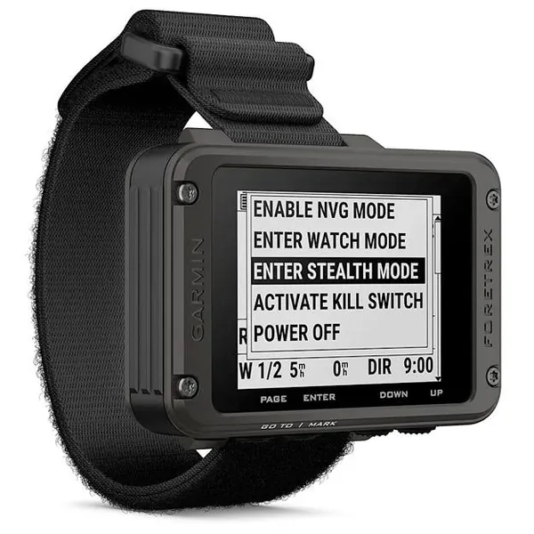 Use stealth mode to stop storing and sharing GPS data and disable wireless connectivity. In case of security issues, hit the kill switch to erase the device memory. Use jumpmaster mode to calculate high-altitude release points in accordance with military guidelines.