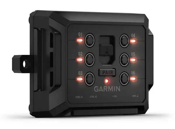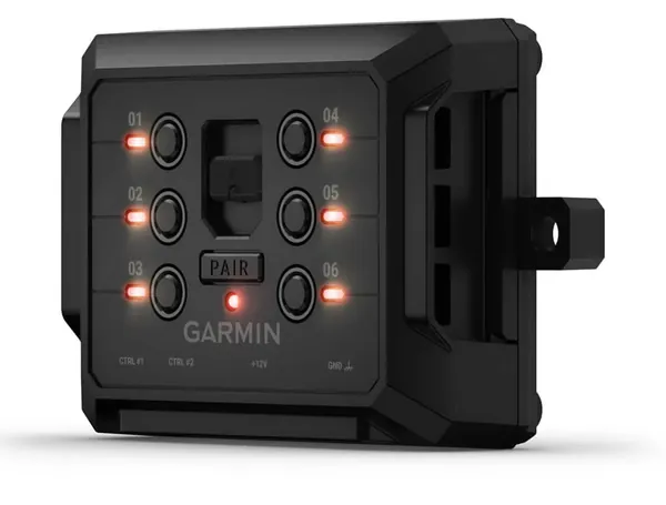 The Garmin PowerSwitch digital switch box uses Bluetooth wireless connectivity to program and operate your accessories from compatible1 Garmin navigators or smartphones.